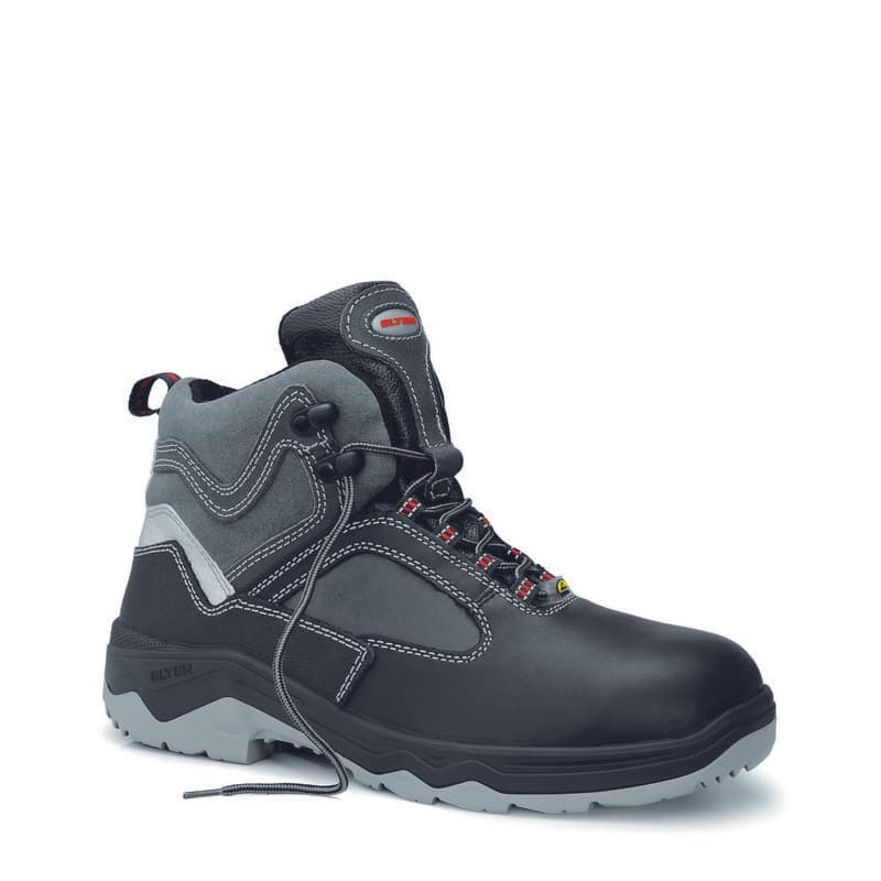 Elten Lex veiligheidsschoen. ESD-veilig. Ademende textiel binnenvoering. Volnerf rundlederen/nubuck/microvezel schacht. PU/PU-zool. Stalen neus en metaalvrije tussenzool. Hoog model.