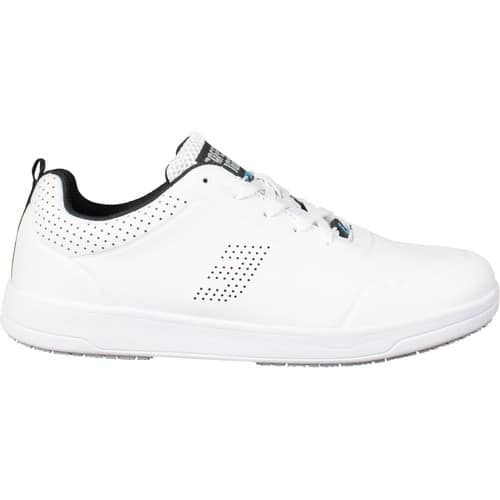 Sportief sneakermodel. Geschikt voor dames en heren. Brede en comfortabele pasvorm. De EVA tussenzool zorgt voor extra schokdemping. ESD-veilig. Mesh binnenvoering. Schacht in synthetisch leder. Vervangbare inlegzool. Rubber/EVA zool. Laag model. Toepassingen: medisch, catering en schoonmaak. Wit kleur. Ook leverbaar in zwart kleur ref. 1-ELISBLK.
