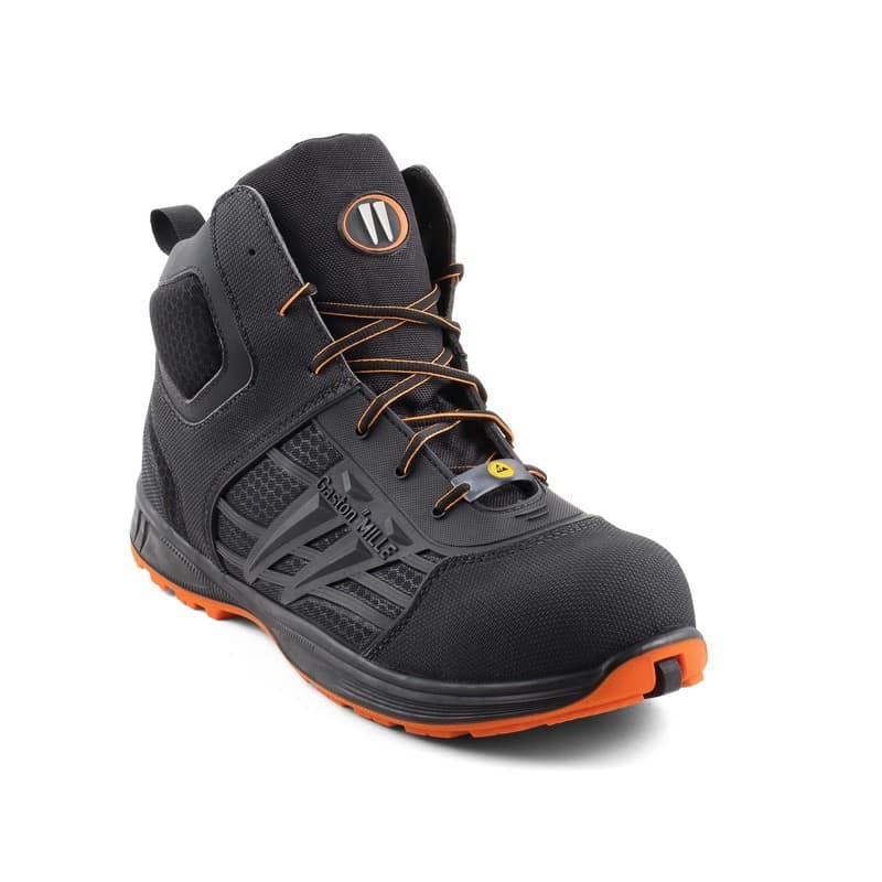 Gaston Mille Neptune veiligheidsschoen. ESD-veilig. Uitneembare inlegzool. Sportief model. Ademende Coolmax binnenvoering. Microvezel schacht. PU/TPU-zool. Aluminium neus en metaalvrije tussenzool. Laag model.
