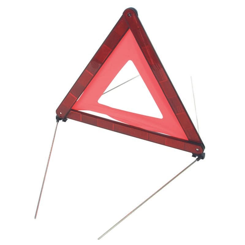 Reflecterende gevarendriehoek. Voor het waarschuwen van andere weggebruikers van de mogelijke gevaren. Komt overeen met de Europese richtlijn ECE27.