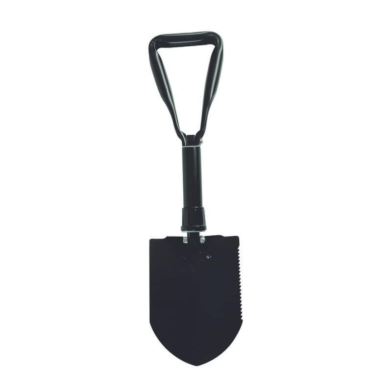 Opvouwbare schop. Heavy-Duty stalen schop met een 1,5 mm dik blad en een comfortabel driehoekig handvat. Inclusief zachte zak met riemring.