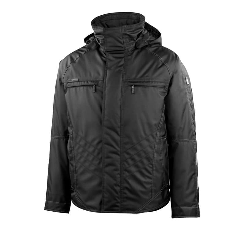 Mascot Frankfurt pilotjack. Eenkleurig. Ademend, wind- en waterdicht. Getapede naden. Afneembare gevoerde capuchon met verstelbaar elastisch rijgsnoer. Fleecevoering met quilt. Sluiting met rits en windvanger met drukknopen. Ritszak onder de windvanger. Borstzakken met rits. Gemakkelijk toegang tot geïntegreerd telefoonzakje in de borstzak. D-ring. Voorgevormde mouwen. Voorzakken. Binnenzak met rits. Tricot (verborgen in windvanger) bij de pols. Reguleerbaar rijgsnoer aan de binnenkant. Rits onderaan de rug voor bedrukking/borduursel. Reflectie-effecten.
