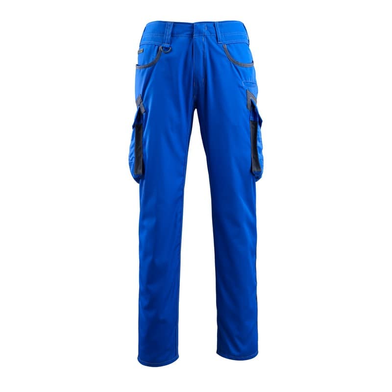 Mascot Ingolstadt werkbroek. Lichte kwaliteit. Tweekleurig. Drievoudig gestikte naden aan de broekspijpen en in het kruis. Lage taille en voorgevormde tailleband. Ergonomisch gevormde broekspijpen. Riemlussen. D-ring. Gulp met rits. Ruime voorzakken met versterkingen van CORDURA®, waarvan één met een gemakkelijk toegankelijk telefoonzakje. Achterzakken met versterking. Dijbeenzakken met klep met verborgen drukknopen. Telefoonzak op de dijbeen. Op de binnenzijde van het product waar de achterzak en de dijbeenzak zit, is extra stof als versterking aangebracht. Reflectie-effecten.