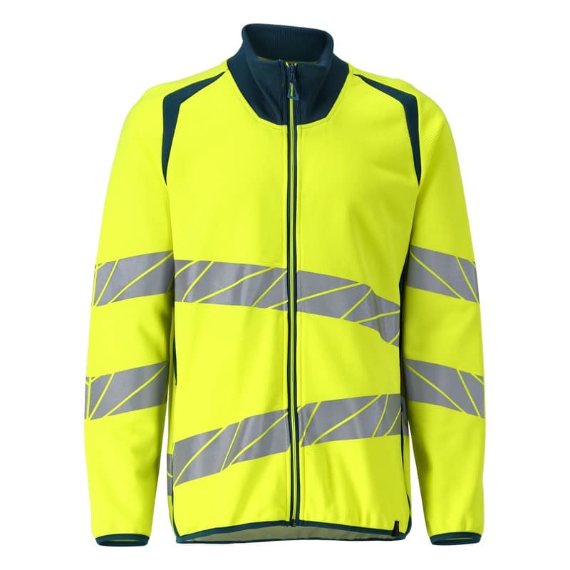 Mascot Accelerate Safe signalisatiesweater met rits. Premium. Fluorescerend, met schuine reflectie. Tweekleurig. Moderne pasvorm. Comfortabel katoen aan de binnenkant en duurzaam polyester met stretch aan de buitenkant. Vierkant jacquardpatroon. Elastische reflectieband. Deelbare rits. Voorzakken met rits. Binnenzakken. Tricot aan de hals. Versteviging in de nek. Elastiekband bij de pols en aan de onderkant.