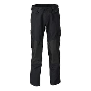 Moderne pasvorm. Verstelbare kniezakken van polyester. Lichte kwaliteit. Ergonomisch gevormde broekspijpen. Riemlussen. Verborgen knoopsluiting. Gulp met rits. Voorzakken. Achterzakken met versterking. Dijbeenzak met telefoonzak en klep met verborgen drukknopen. Versterkte duimstokzak. Beenlengte: 82 cm (ook leverbaar 76 cm en 90 cm). Maattoeslag: 64-68 +30%.