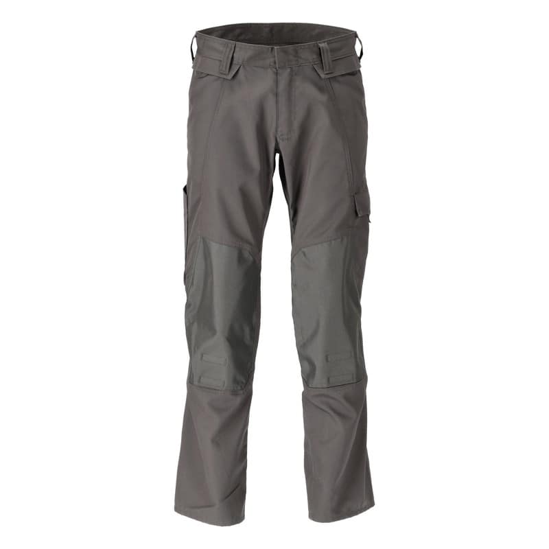Mascot Accelerate 330 werkbroek. Moderne pasvorm. Verstelbare kniezakken van polyester. Lichte kwaliteit. Ergonomisch gevormde broekspijpen. Riemlussen. Verborgen knoopsluiting. Gulp met rits. Voorzakken. Achterzakken met versterking. Dijbeenzak met telefoonzak en klep met verborgen drukknopen. Versterkte duimstokzak. Beenlengte: 82 cm (ook leverbaar 76 cm en 90 cm). Maattoeslag: 64-68 +30%.