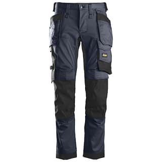 Stretch werkbroek met holsterzakken. Multifunctionele werkbroek gemaakt van stretch stof. Deze werkbroek is gemaakt van full-stretch materiaal voor extra flexibiliteit en bewegingsvrijheid, met 4-weg stretch elementen aan de achterkant . De met Cordura versterkte duimstokzak en cargozakken zorgen voor veilige opslag van gereedschap waar je gemakkelijk bij kunt. KneeGuard systeem gecertificeerd volgens EN 14404. Slim fit broekspijpen. 2- en 4-weg stretch materialen. Stretch Cordura bij knieën en kruis. KneeGuard systeem (EN 14404). Cordura zakken. Voorgebogen broekspijpen.