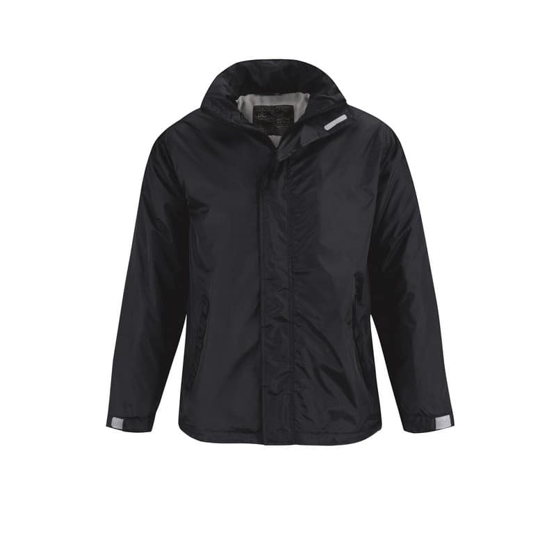 B&C Ocean Shore jas. Waterafstotend, winddicht en warm. Kap verborgen in de kraag. Ritssluiting onder klep met velcro. 1 binnenzak. 2 buitenzakken. Mouwuiteinden verstelbaar met velcro. Mouwen met 100% polyester Tafetta voering.