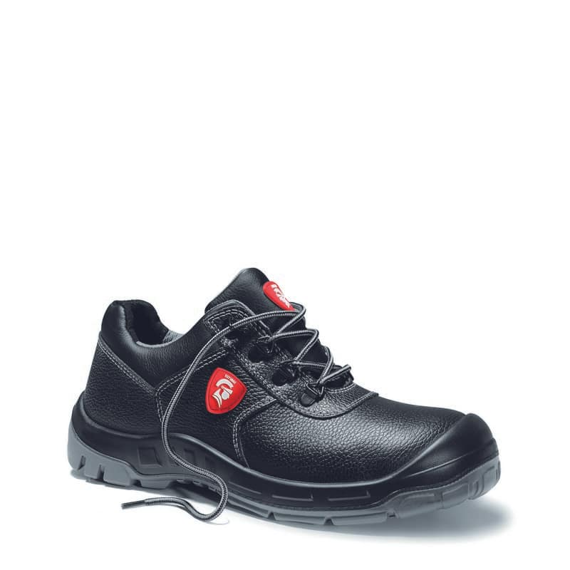 Uitneembare inlegzool. Beschermende PU-neus tegen slijtage. Bouwschoen. Ademende textiel binnenvoering. Volnerf rundlederen schacht. PU/PU-zool. Stalen neus en stalen tussenzool. Laag model.